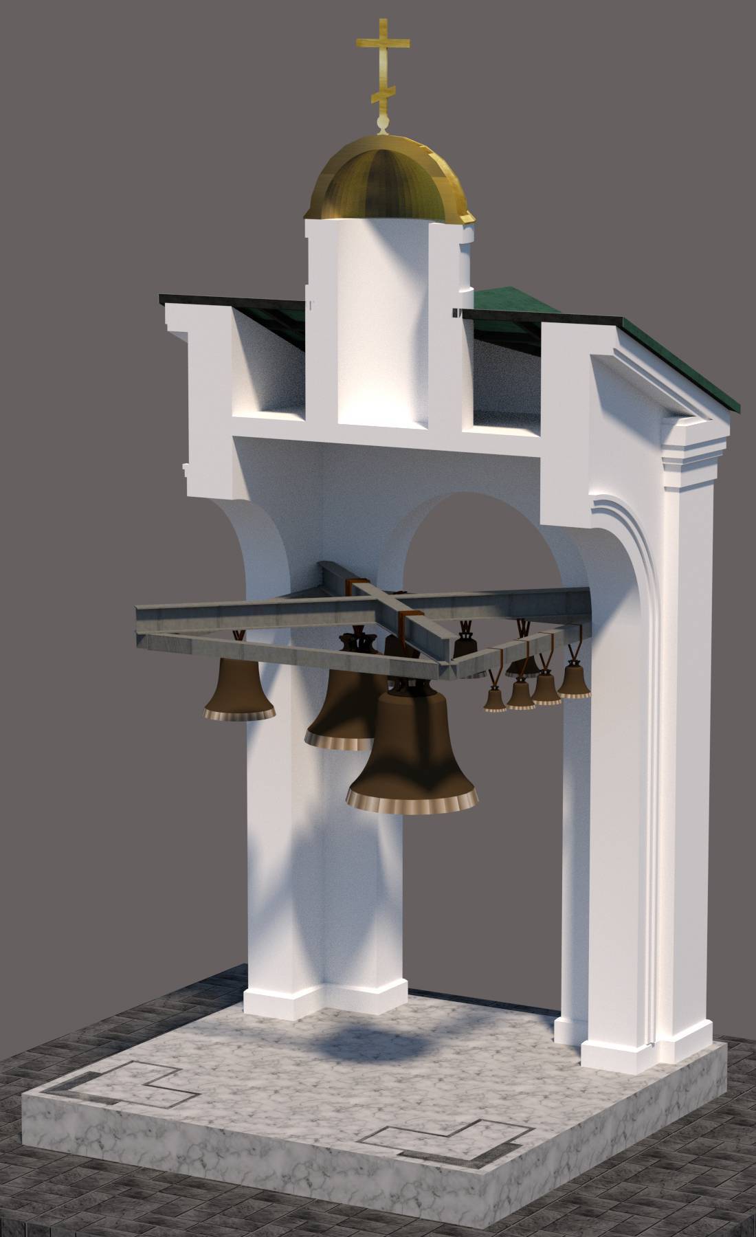 Разработан новый проект звонницы, адаптированный под конструктивные ограничения существующего фундамента. При проектировании учтены рекомендации по установке колоколов и системе электронного звонаря, предоставленные художественной литейной мастерской Подорожного Б.А. (Воронеж).