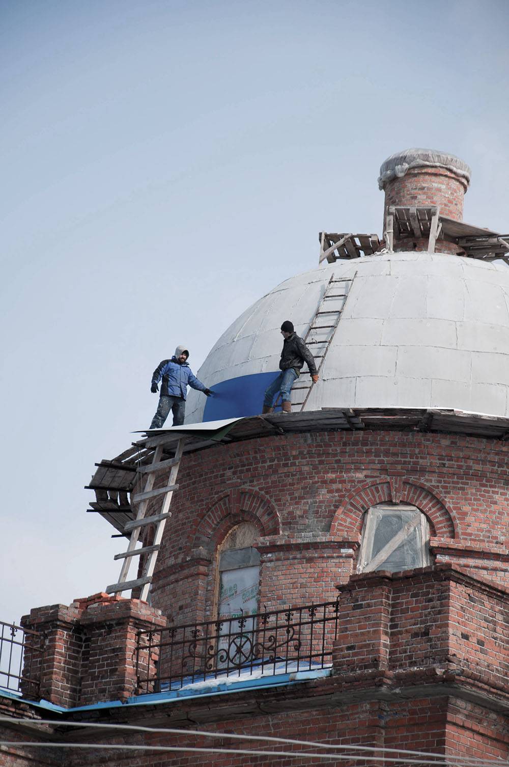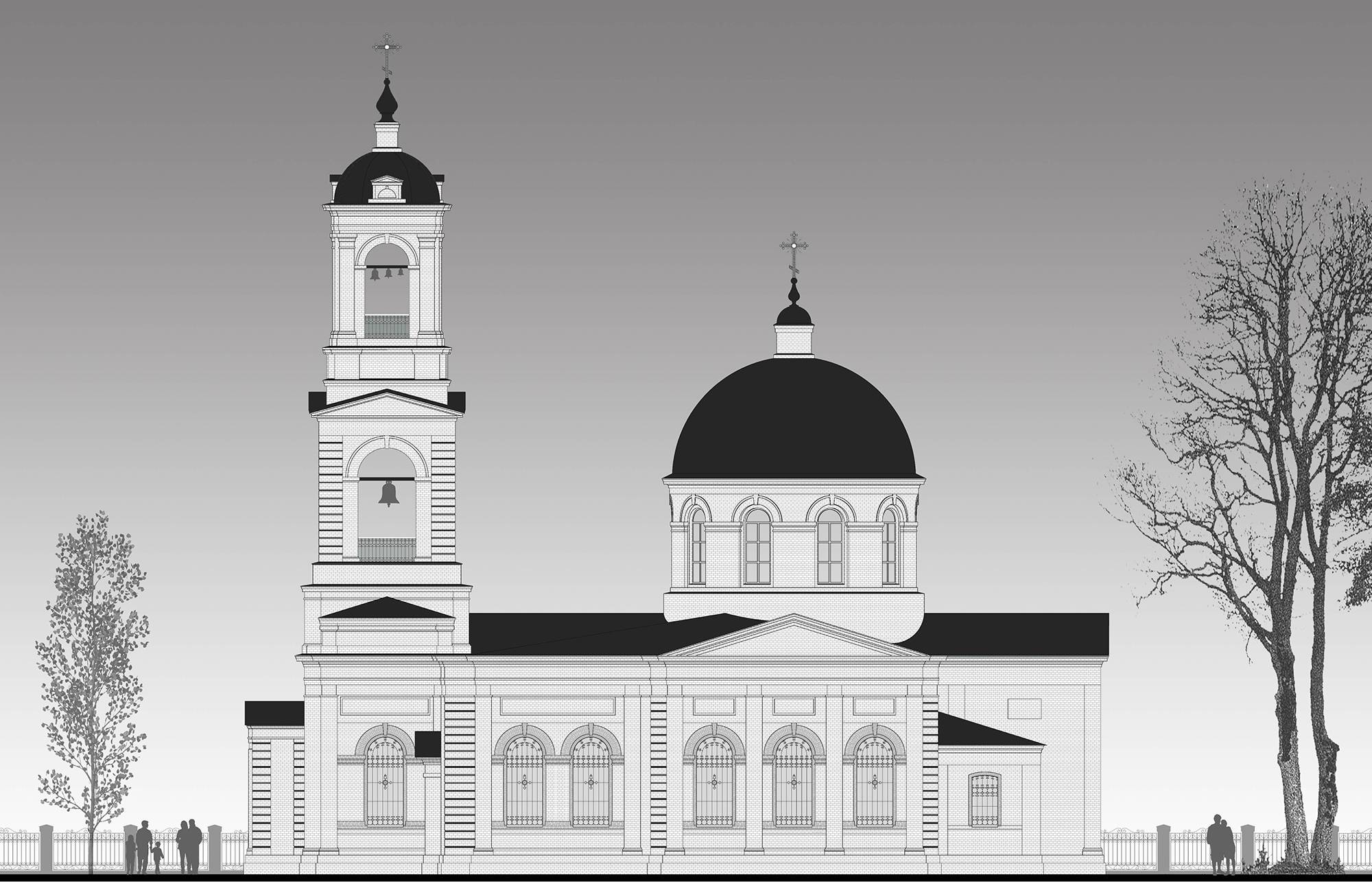 Проект купола (диаметром 8 метров) и колокольни разрабатывался на основе изучения архивных фотографий и проектов храмов той же эпохи. Мы стремились не к стилизации, а к аутентичному воссозданию, чтобы новые элементы стали прямым продолжением существующей архитектуры. Нашей целью было достичь полного визуального и стилистического слияния, а не создать контраст между старым и новым.