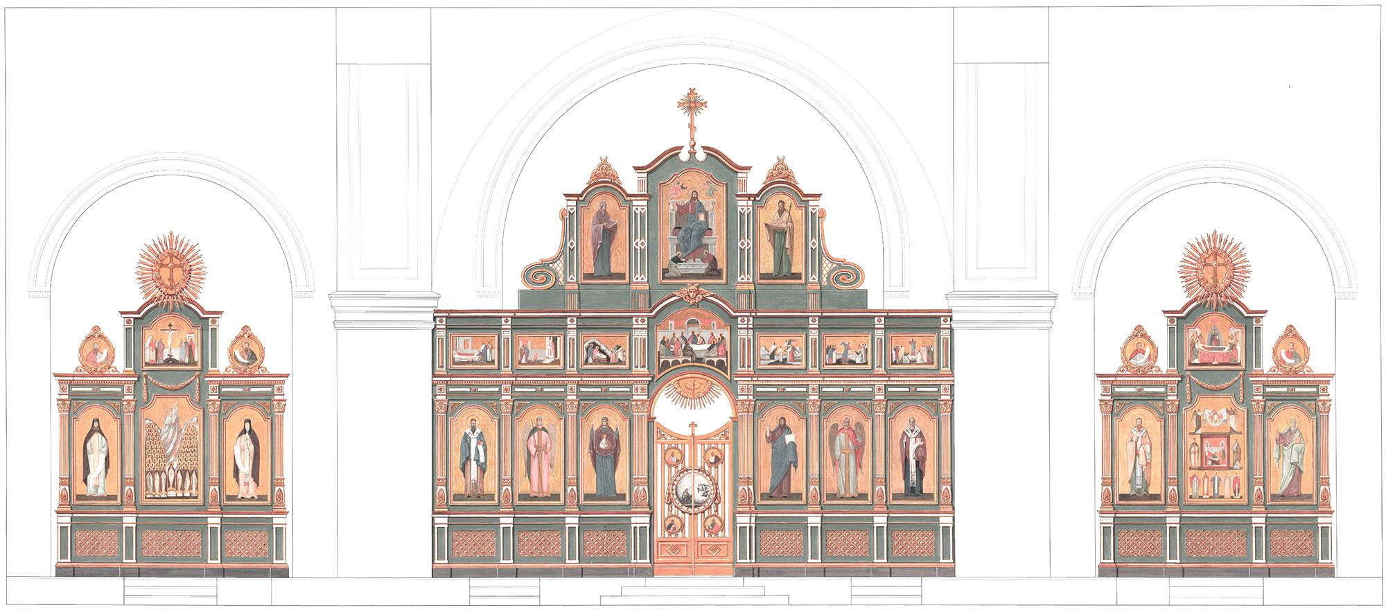 Мы разработали проект нового иконостаса в стилистике эклектики, характерной для архитектуры храма и эпохи его постройки. Проект учитывает все канонические требования и создаёт гармоничный визуальный акцент в интерьере, возвращая ему историческую достоверность и художественную цельность.