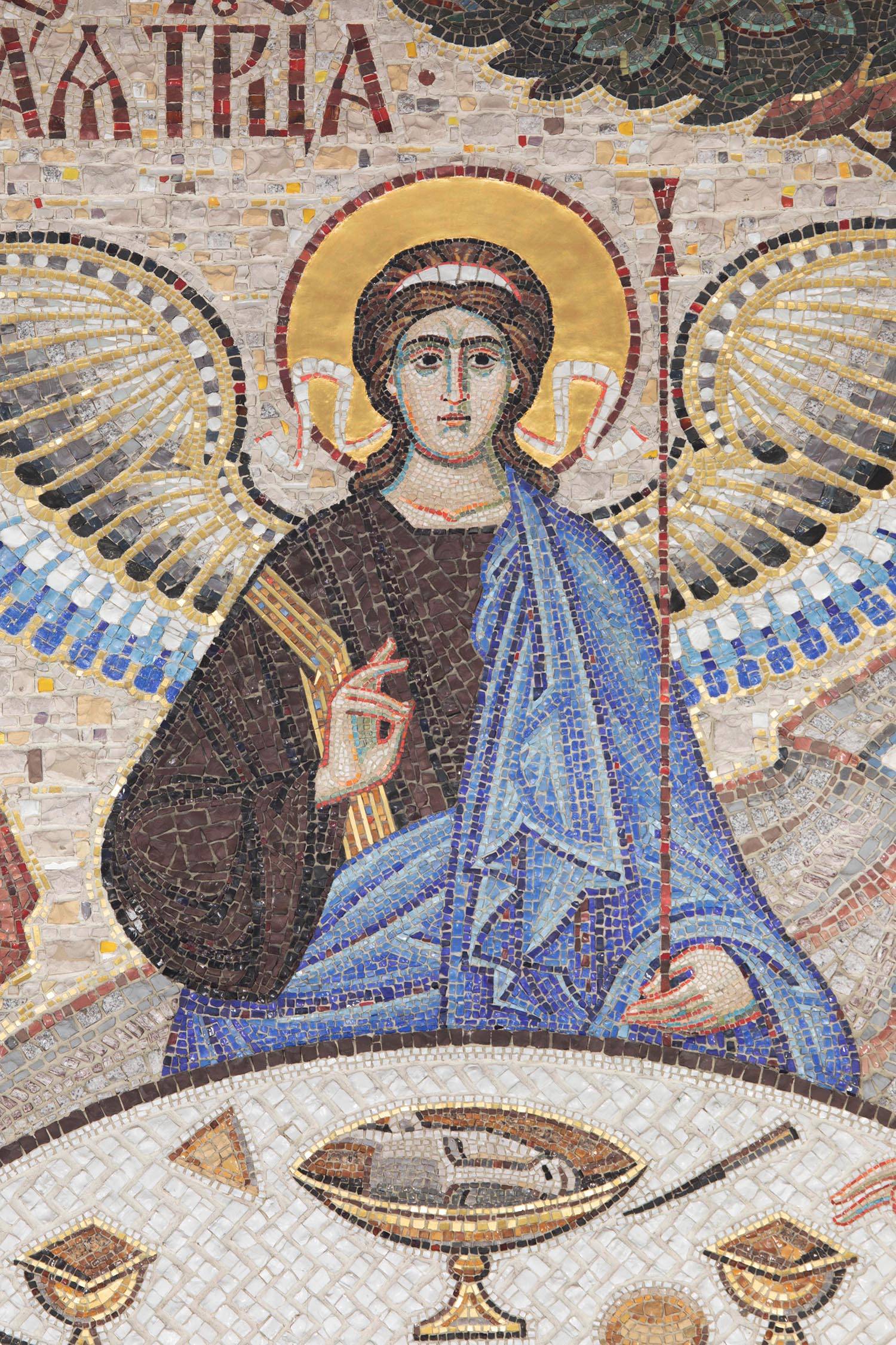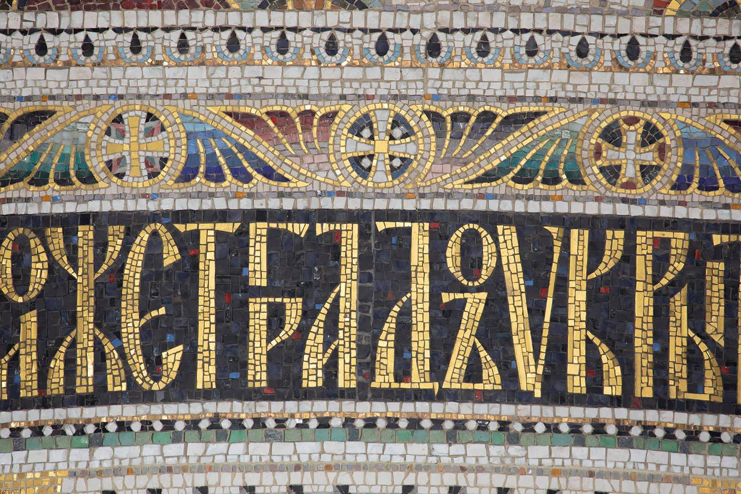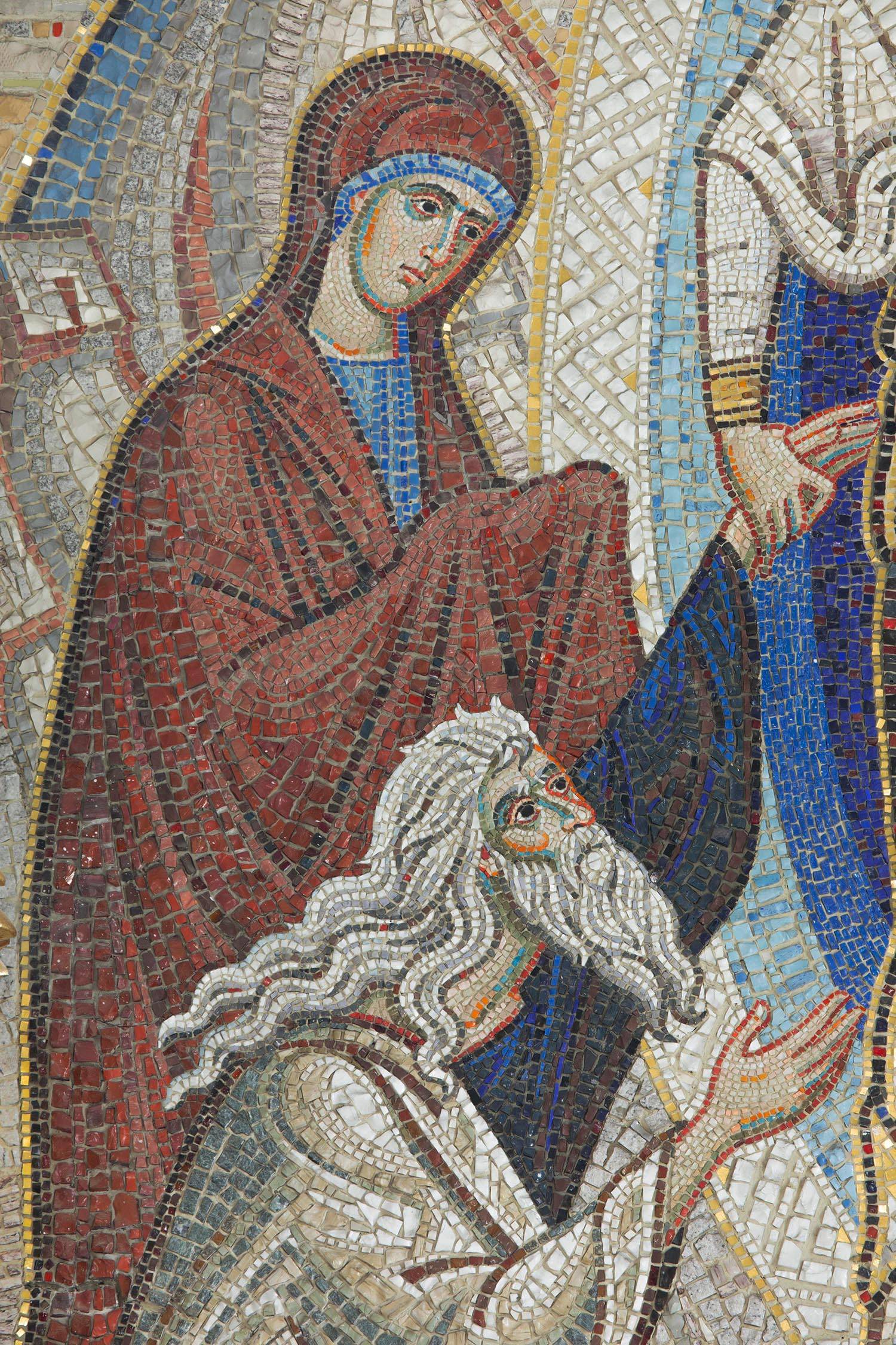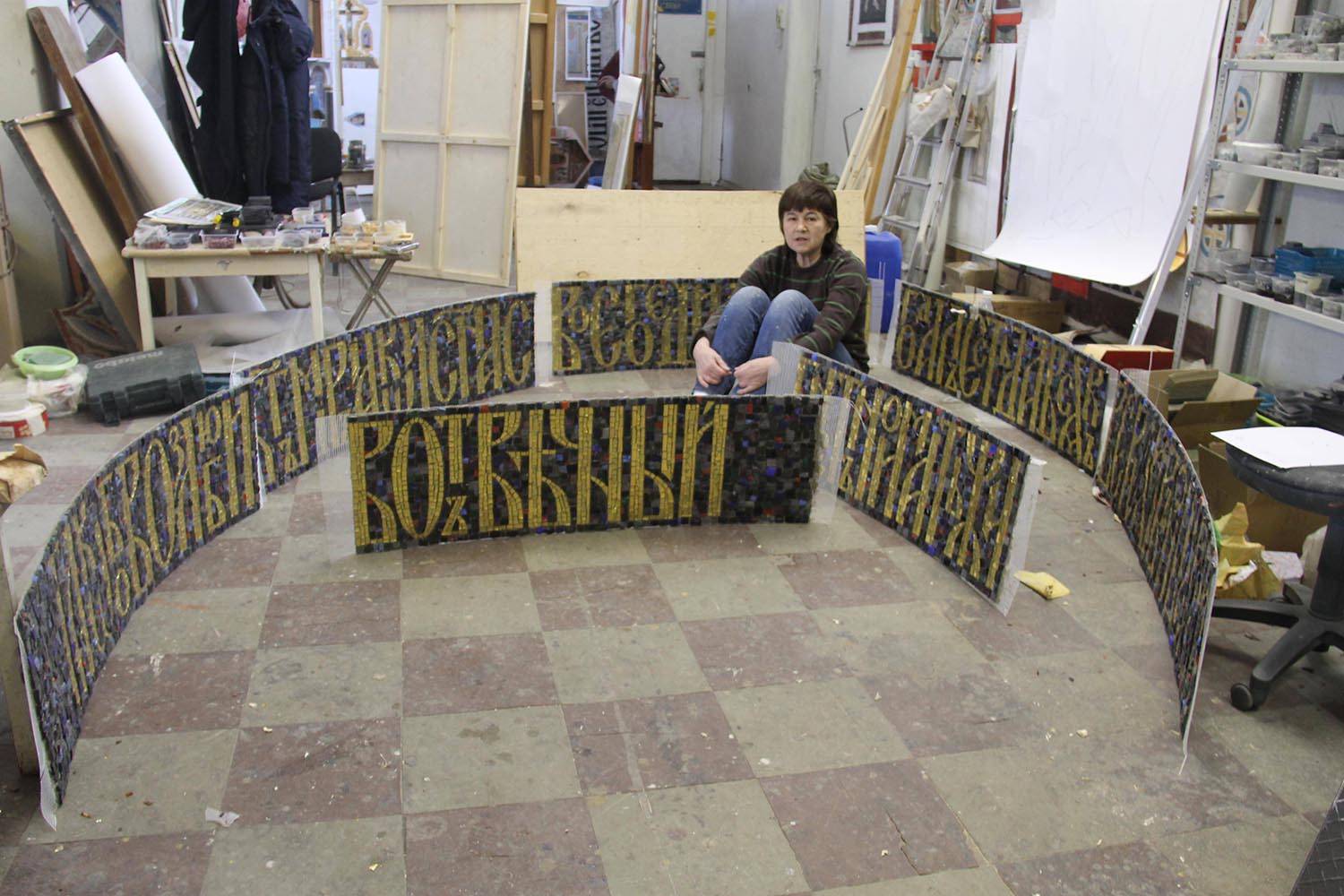 Работы по созданию мозаичного убранства алтарной части велись с 2015 по 2021 год. Проект интерьера, включая архитектурное решение, разработан Д. Римшей. Эскизы мозаик — А. Проценко. Мозаики выполнялись поэтапно, по мере поступления средств. Основной акцент был сделан на трёх алтарных конхах. В центральной размещена композиция «Богоматерь с Младенцем на троне», а в боковых — образы святых Сергия Радонежского и Стефана Пермского. Выше, на восточной стене, расположены сюжеты «Крещение», «Троица» и «Сошествие во ад». Мозаики апсид собраны на золотом фоне, что создаёт эффект сияния и гармонично сочетается с мраморным убранством храма.