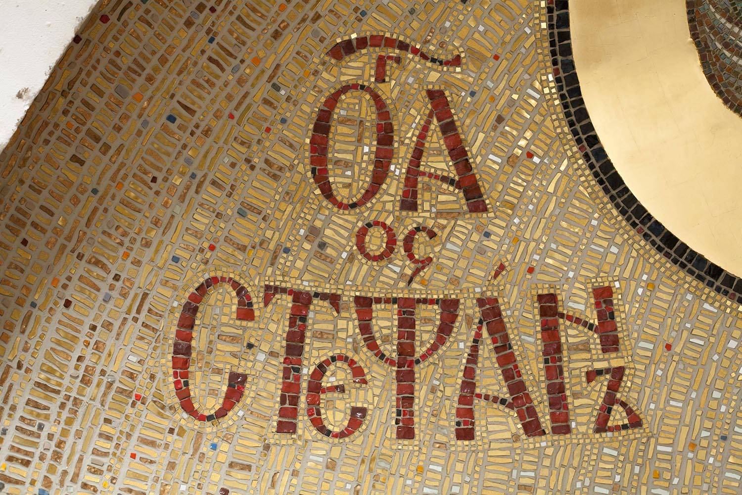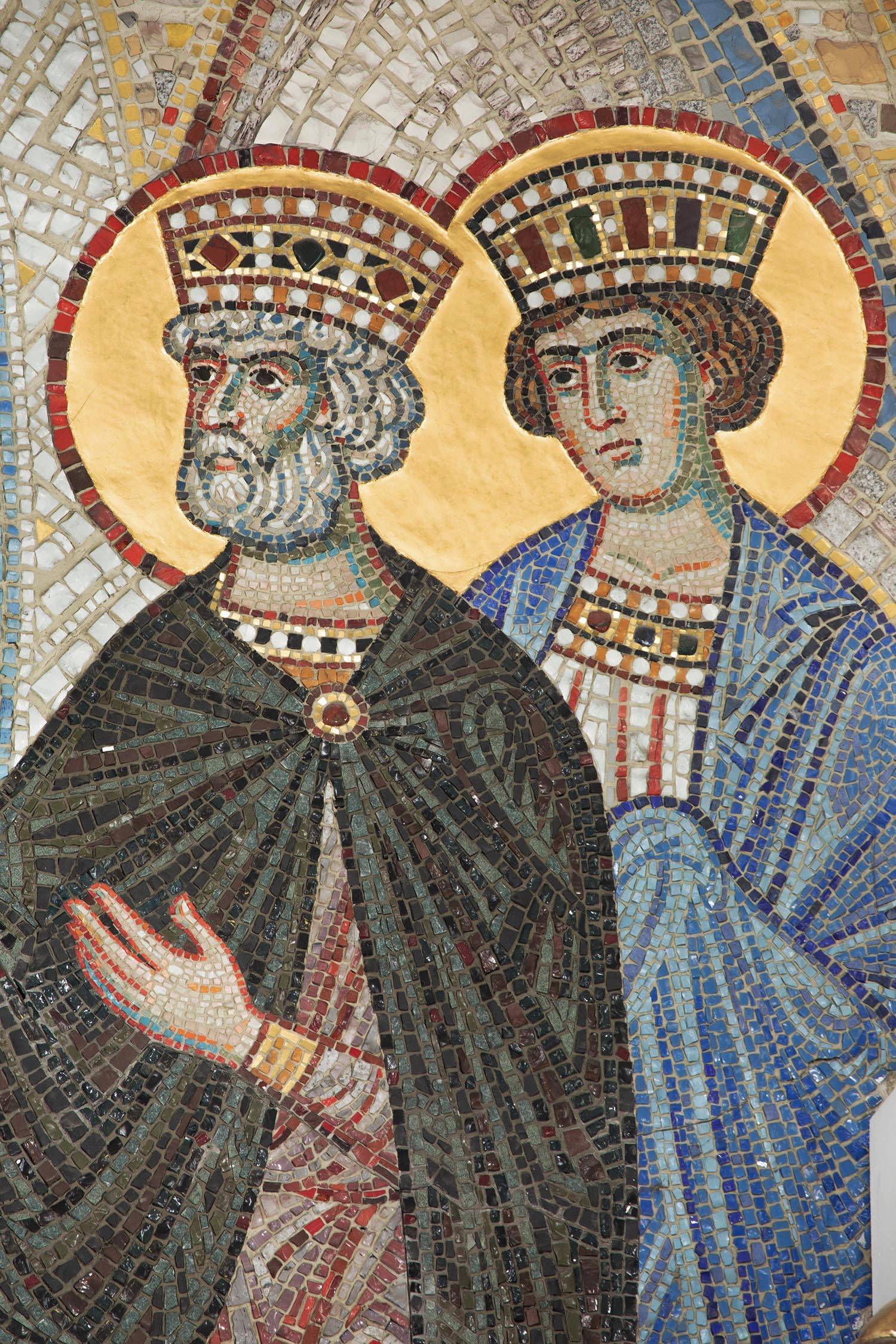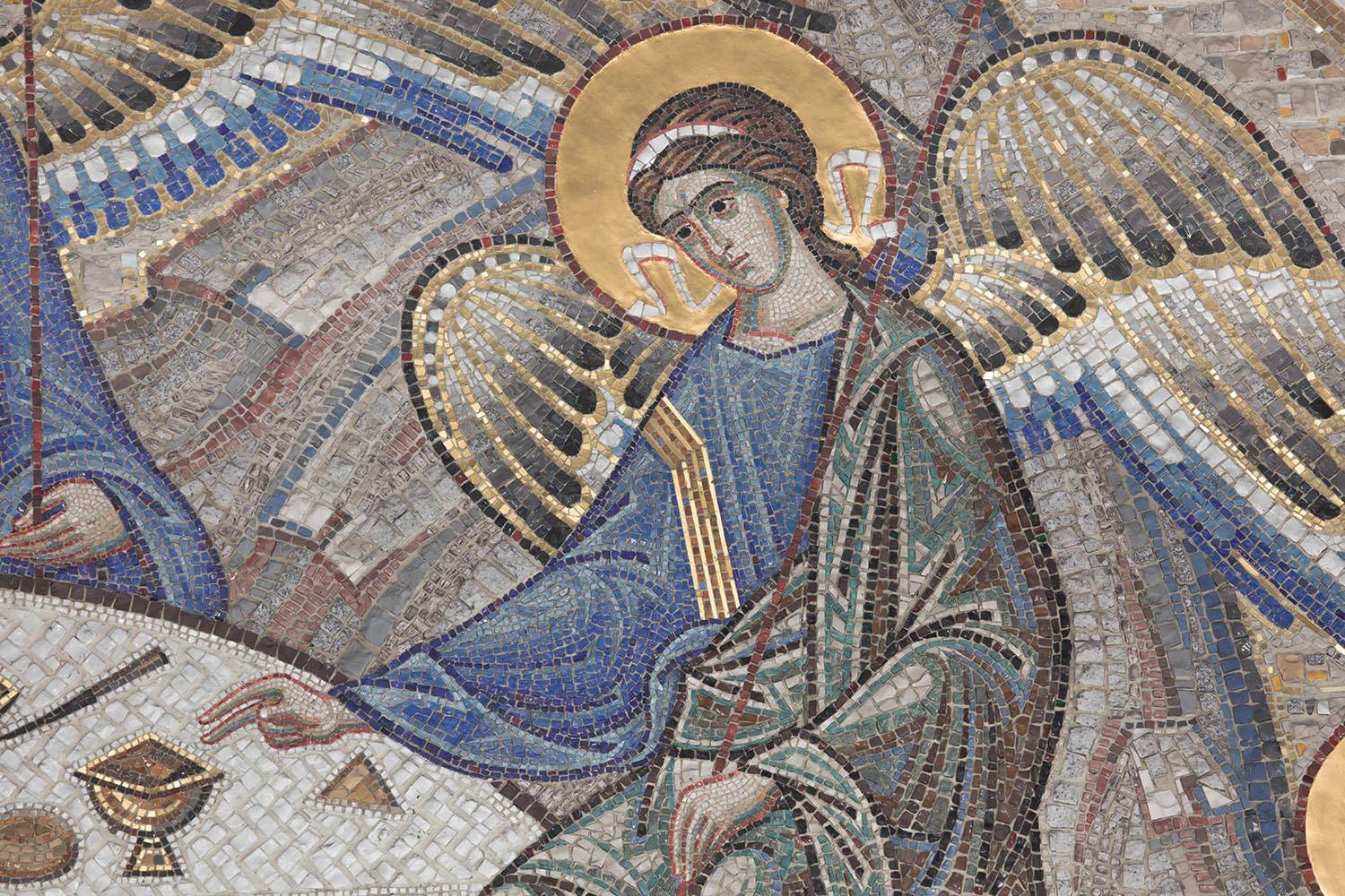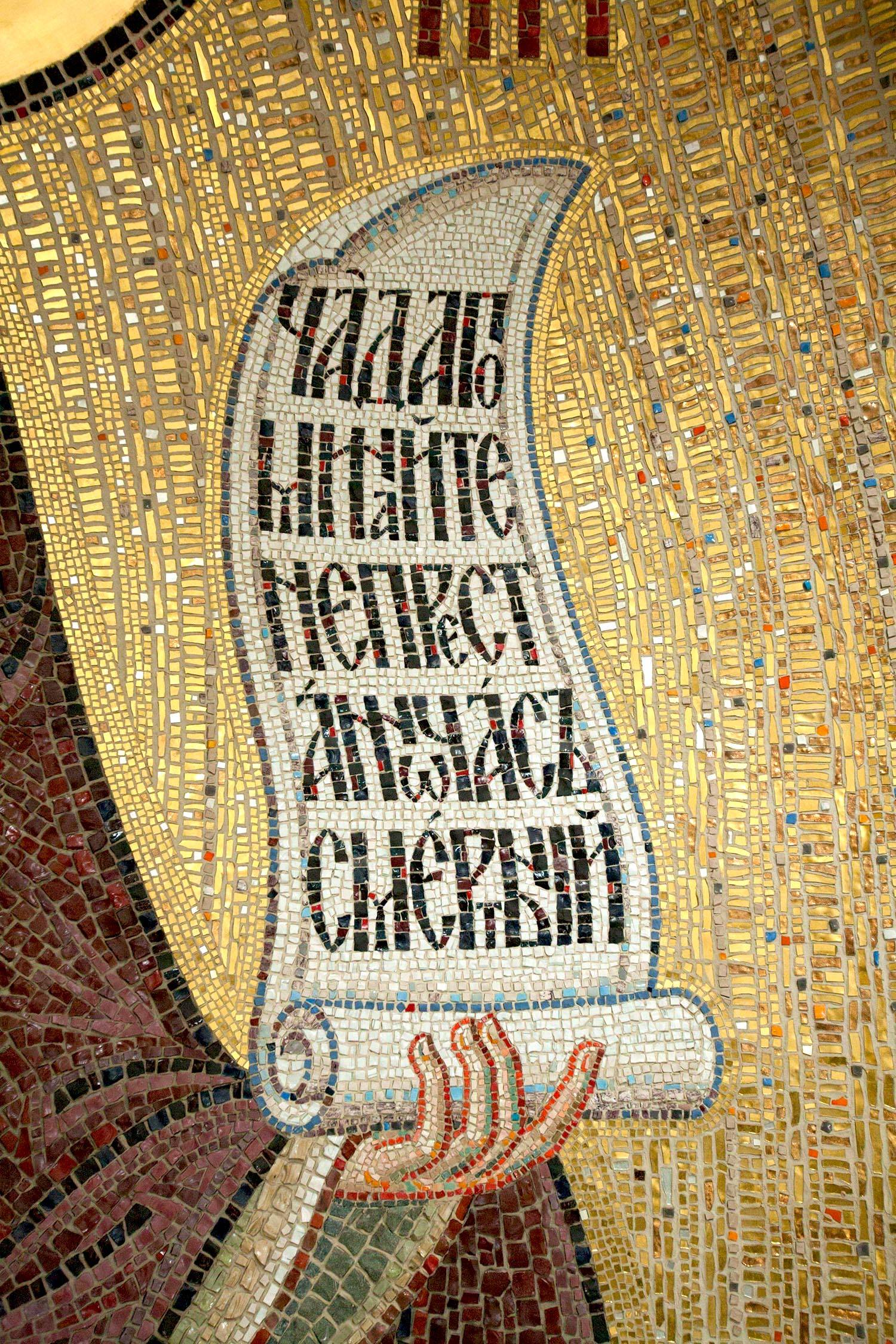 Работы по созданию мозаичного убранства алтарной части велись с 2015 по 2021 год. Проект интерьера, включая архитектурное решение, разработан Д. Римшей. Эскизы мозаик — А. Проценко. Мозаики выполнялись поэтапно, по мере поступления средств. Основной акцент был сделан на трёх алтарных конхах. В центральной размещена композиция «Богоматерь с Младенцем на троне», а в боковых — образы святых Сергия Радонежского и Стефана Пермского. Выше, на восточной стене, расположены сюжеты «Крещение», «Троица» и «Сошествие во ад». Мозаики апсид собраны на золотом фоне, что создаёт эффект сияния и гармонично сочетается с мраморным убранством храма.